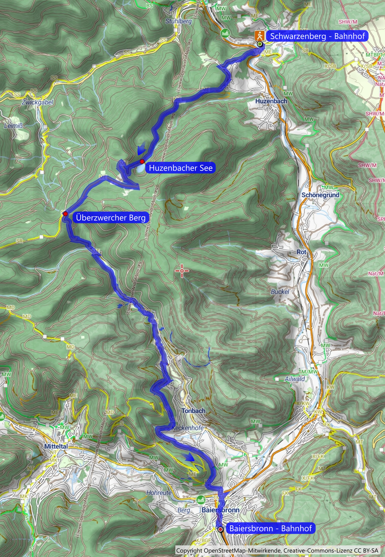 Die gute Bahnverbindung im Murgtal gibt dem Wanderer ganz besondere Flexibilität. Statt den üblichen Rundwanderungen können wir hier von Bahnstation zu Bahnstation Strecke wandern. in diesem Fall verbinden wir den Huzenbacher See mit dem Tonbachtal und erreichen Baiersbron zu Fuß.